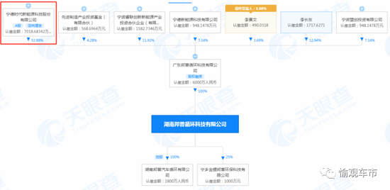 天眼查显示,湖南邦普是广东邦普循环科技有限公司(简称“广东邦普“)的100%控股子公司,而宁德时代控股广东邦普52.88%。
