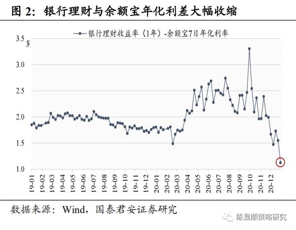 市场的钱看似很多?源自何处?微观流动性的超预期不容忽视,密切关注2021年无风险利率下行的可能。当前行情,关键在于分母端-流动性的超预期。中央经济工作会议“不急转弯”,叠加央行就引导利率下行的表述,市场有关流动性收紧的负面预期向后推延,这是自上而下的背景。但背景不是推动上涨的直接理由,关键在于微观流动性超预期。当前ETF的规模扩张、公募基金的发行火爆,本质是居民配置力量强化的结果,背后关键是利率下行的无形之手。一方面,12月以来一年期银行理财产品预期年收益率快速下行并创下历史新低(3.45%);另一方面,一年期银行理财与余额宝年化利差大幅收缩,触及历史低位(1.12%)。我们认为2021年无风险利率有望迎来进一步下行的可能,这将成为2021年行情的核心驱动。