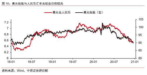 两类因素推动下,人民币汇率有望在今年上半年进一步走强。我们在此前2021年宏观经济展望中认为,由于我国与海外主要经济体的“相位差”,无论是货币与财政政策的差异还是经济基本面恢复的差异都将在今年上半年延续,因此人民币汇率还将持续偏强。而2021年开年以来,人民币汇率也的确延续了去年四季度起的较强趋势,美元兑人民币汇率中间价由去年末的6.54进一步升值约1个百分点至6.476。往后展望,从边际影响因素观察,我们认为还有两个因素会进一步加强这一趋势在近期的演化。