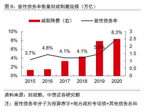财政政策方面,主要是保持适度支持强度,更注重提质增效和结构性安排。2020年,我国阶段性上调赤字率至3.6%以上(3.76万亿),新增地方政府专项债额度提高至3.75万亿,并且安排发行1万亿特别国债,一揽子规模刺激政策(赤字+新增专项债+特别国债总计约8.5万亿)发挥了巨大作用。2021年,我们预计财政政策总规模可能下降1-1.5万亿,按照平均水平1.3万亿左右估计,既可以维持适度强度,也体现了疫后经济恢复过程中逆周期政策的有序稳步退出。具体来说,我们预计赤字率将维持在3.2%,新增地方政府专项债规模维持不变或小幅下降,特别国债不再安排。此外,结构性减税改革继续推进,但是阶段性减免企业社保费政策可能会稳步退出。财政部数据显示,2020年1-10月,全国新增减税降费22301.61亿元,其中新增减税7461.12亿元,新增降费14840.49亿元(其中企业社保费新增降费14335.45亿元),预计全年为企业新增减负超过2.5万亿元。在2021年上半年我国经济增速较高,相对全球其他经济体较好的“窗口期”,预计会加快深化财税改革,尤其是加强省级统筹,盘活存量资产,有序化解地方政府隐性债务风险。