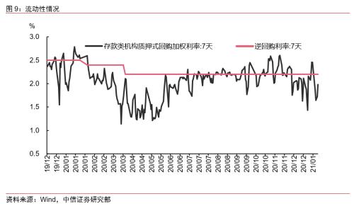 12月份以来,为了满足跨年流动性需求,以及应对部分国有企业违约事件的影响,中国人民银行加大了公开市场投放的力度,DR007大部分时间在政策利率以下运行,预计1月以后,DR007可能向政策利率回归,或回到略高于7天OMO利率的水平。但总体上,流动性仍然维持合理中性。此外,货币政策也会重点考虑退出节奏和结构性精准投放的问题,一方面,央行已经明确:延续实施普惠小微企业贷款延期还本付息和普惠小微企业信用贷款两项直达实体经济的货币政策工具,继续运用普惠性再贷款再贴现政策,引导金融机构加大对“三农”、科技创新、小微和民营企业等国民经济重点领域和薄弱环节的支持力度;另一方面,新出台的《关于建立银行业金融机构房地产贷款集中度管理制度的通知》对不同银行分别设置了房地产贷款余额占比和个人住房贷款余额占比两个上限,分五档对房地产贷款集中度进行管理,也明确了完善金融支持实体经济、坚持“房住不炒”的大方向。客观评估这一政策,考虑政策根据银行经营的实际情况进行分档,大部分银行达标并无明显压力,并且给予了2-4年足够长的过渡期,预计短期也不会间接影响到整个社会融资,反而通过建立长效机制,有望促进社会融资的平稳健康增长。