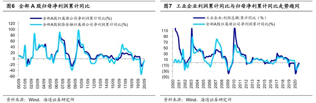 这轮盈利回升有望持续至21年4季度。我们前期报告《“股”舞人心——2021年中国股市展望-20201127》、《业绩回升,全年转正 ——20年三季报点评-20201031》中指出2002年以来A股经历了5轮归母净利润增速和ROE上行周期,分别平均持续6-7个季度,本轮盈利周期是第六轮,全部A股归母净利累计同比从20Q1见底后开始回升,同时ROE从20Q2低点开始回升。盈利周期上行的动力源自补库存周期和宏观政策见效,本轮补库存周期原本从19年11月启动,期间疫情有所扰动,历史上一轮库存周期平均持续21个月,考虑到疫情耽误一个季度,依此推断这次补库存可能持续至21年底。综合来看,我们预计A股净利累计同比增速将持续回升至2021年3季度,ROE持续回升至2021年Q4,2021年全部A股预测净利同比增速为15%。
