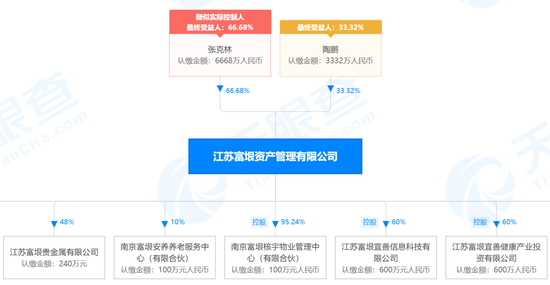 此次疑似失联的一家私募“江苏富垠资产管理有限公司”,天眼查信息显示,富垠资产成立于2012年10月24日,注册资本1个亿,实缴30%。由自然人张克林、陶鹏分别持股66.68%、33.32%。