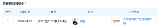 值得注意的是,富垠资产涉及多起民间借贷纠纷、劳动争议、合同纠纷等案件,去年4月份,富垠资产和陶鹏被法院采取限制高消费令。