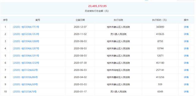 据《投资者网》统计,2020年以来,2020年彰泰集团合计10次被列为被执行人,合计金额约193.22万元,案由主要为银行金融借款纠纷和业主纠纷。具体来看,据中国网地产报道和企查查数据显示, 2020年7月30日, 彰泰集团被桂林市象山区人民法院列为被执行人,执行标的45.11万元,而此前的4月2日、3月3日、1月17日公司亦分别被桂林市叠彩区、象山区和灵川县人民法院列为被执行人,执行标的合计约42.06万元。