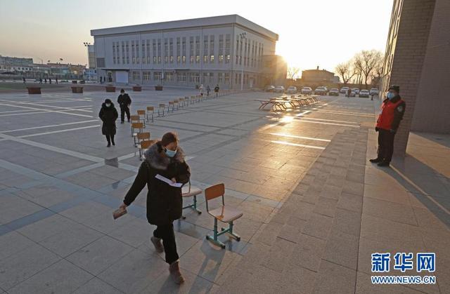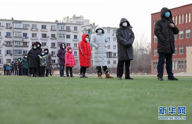 1月11日,在沈阳市铁西区彰驿学校检测点,居民有序排队等待检测。