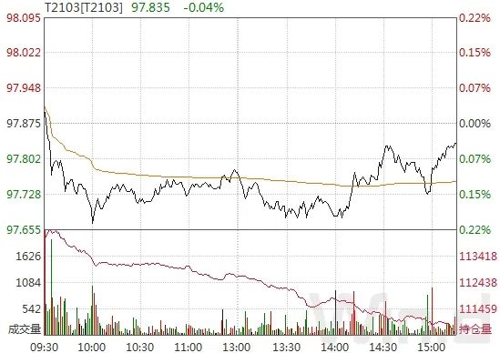 周一,国债期货盘中明显下挫后尾盘拉升,收盘涨跌不一,10年期主力合约跌0.04%,5年期主力合约持平,2年期主力合约接近持平。A股方面,两市股指震荡走低新能源、白酒、资源板块集体回调,上证指数跌1.08%,深证成指跌1.33%,创业板指跌1.84%。