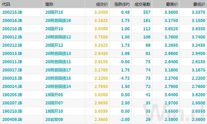 银行间主要利率债收益率盘中一度上行3bp左右,尾盘震荡向下升幅收窄。10年期国开活跃券200215收益率上行0.48bp,盘中一度上行2.48bp触及3.56%;10年期国债活跃券200016收益率上行1.75bp,盘中一度上行3bp触及3.1750%。