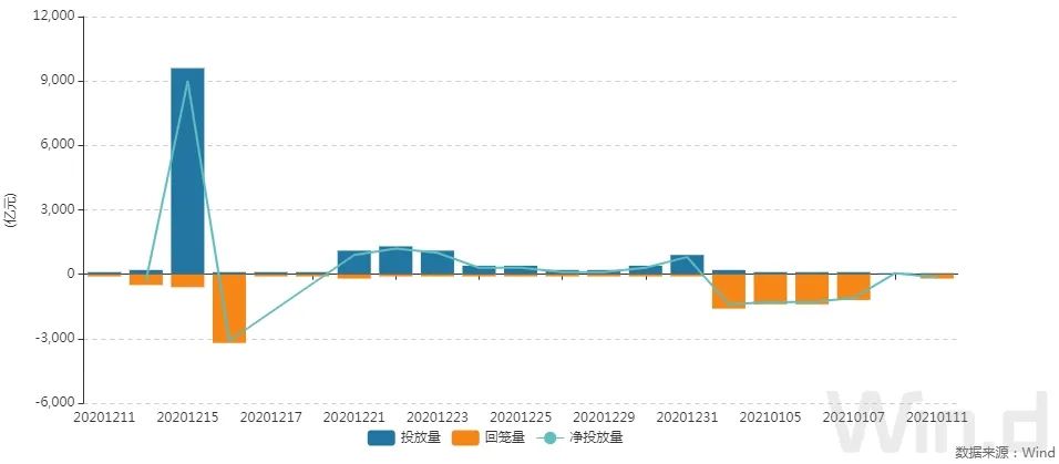 央行公告称,为维护银行体系流动性合理充裕,1月11日以利率招标方式开展了50亿元7天期逆回购操作,中标利率2.20%;Wind数据显示,当日200亿元逆回购到期,净回笼150亿元。