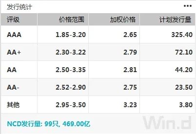 从发债类型看,1月11日,债券市场共发行同业存单99只,金融债5只,公司债7只,中期票据11只,短期融资券24只,定向工具2只,资产支持证券5只。