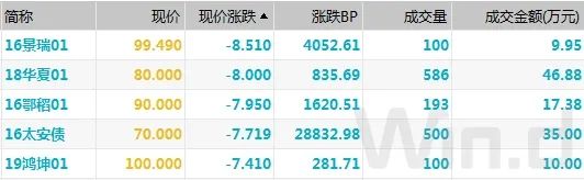 信用债行情稳定,少数网红债波动较大。“18华夏01”跌超9%,消息称华夏幸福18亿元私募债已按期全额付息,公司称运营一切正常。“16景瑞01”跌近8%,“16鄂稻01”跌超8%,“19鸿坤01”跌近7%,“16文投MTN001”跌近5%,“16鲁宏桥MTN002”涨超5%。