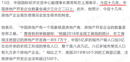 但他预计,今后十几年,中国房地产开发企业数量会减少三分之二以上。