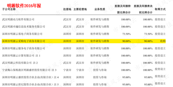 明源软件2016年披露,深圳市明源云采购电子商务有限公司是其持股90%的子公司。