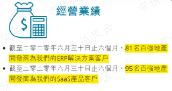 目前,已推出SaaS产品包括应用于房地产供应链的云采购、应用于建造工地的云链、应用于售楼处的云客,以及应用于资产管理的云空间。