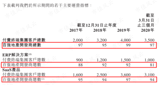 明源云在招股书中,将百强地产开发商数量作为反映付费终端集团客户数量的主要运营指标来披露。