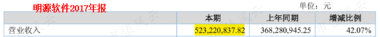 招股书披露的2017年营业收入为5.8亿元,而明源软件2017年报营业收入为5.2亿元,两者相差6000万元。