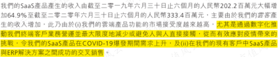 疫情是促进SaaS产品业务在上半年收入同比大增64.9%的重要因素。