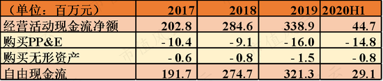 2019年,公司经营活动现金流净额为3.4亿元,而同期资本开支为1750万元,自由现金流高达3.2亿元。