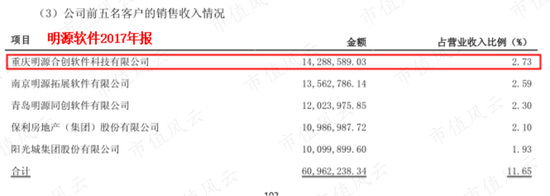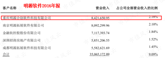明源云主要子公司明源云科技(新三板上市名称为“明源软件”)年报显示,2016年和2017年,重庆明源合创软件科技有限公司(“重庆明源合创”)一直是明源软件的最大客户。