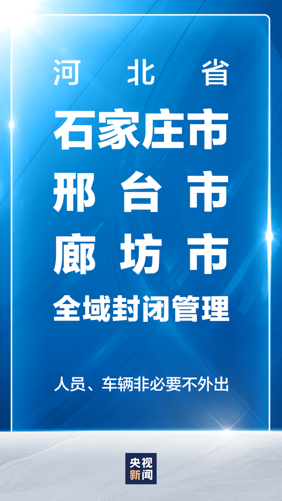 ■河北石家庄、邢台、廊坊全域实行封闭管理