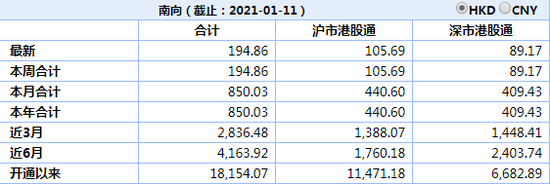 1月12日消息,南向资金净买入107.51亿港元,港股通(沪)净买入37.05亿港元,港股通(深)净买入70.47亿港元。