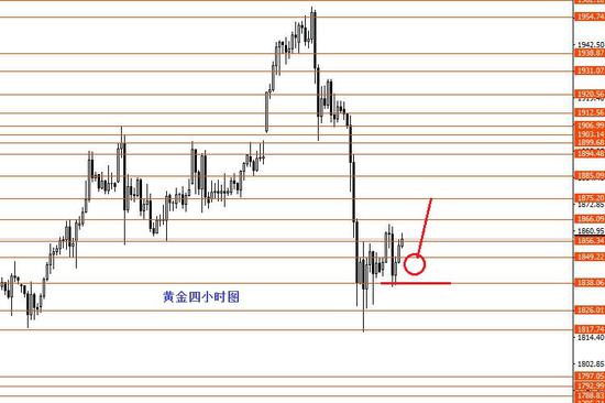 黄金正如周一预期,在1817上方震荡修整。周一分析为后市波段策略,个人更倾向于方案1红线,蓝色线为备选方案。从图形来看,短线修整时间周期还不够,今日继续关注1838强支撑,在没成功下破前,继续小幅向上反弹的概率较大些。保守者观望,激进者操作建议:1846-1849附近做多,止损1835,目标看向1866和1875区域。控制仓量,严格止损。