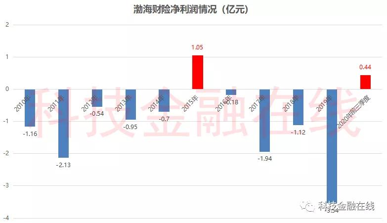 公开数据显示,从2010年至2019年间,渤海财险仅在2015年实现盈利,当年净利润为1.05亿,其余年份则均处于亏损当中。