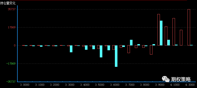从1月持仓分布来看,认购最大持仓由3700变为4000,认沽仍在3500处持仓最大,50ETF支撑不变,压力已上移。