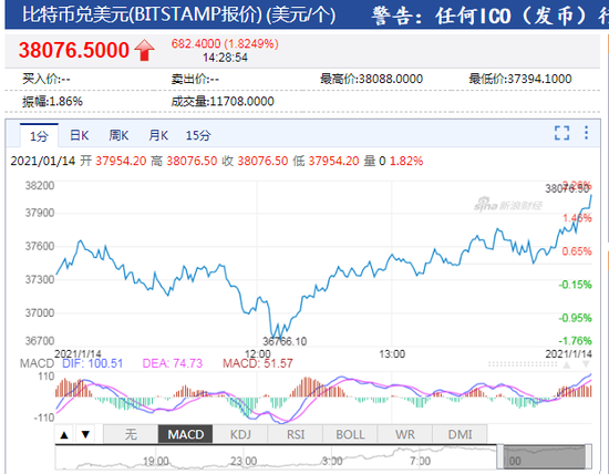 热点栏目比特币再度站上38000美元/枚,日内涨幅达1.72%。