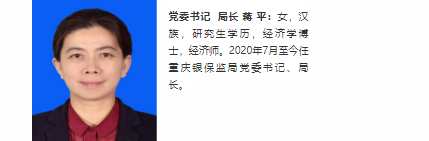 女,汉族,1974年9月出生,中共党员,经济学硕士。2018年11月,任贵州银保监局党委委员。2019年07月,任重庆银保监局党委委员。2020年09月,任重庆银保监局党委委员、副局长。