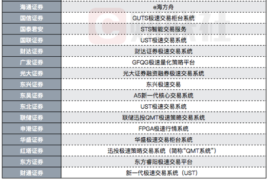 据不完全统计,近一年内,至少有广发证券、华创证券、国联证券、东吴证券、西部证券、粤开证券、申万宏源、万和证券、华泰证券、国信证券、国泰君安等12家券商或更新迭代或上线极速交易系统、平台或服务。