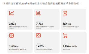 根据艾瑞咨询,快手的内容社区活跃度在中国头部的基于视频的社交平台中排名第一,直到2020年6月30日止六个月的内容创作者占平均月活跃用户在快手应用上的比例约26%。截至目前,快手巨大的内容库已包含260亿条短视频,仅2020年上半年(截至6月30日)用户在快手上就进行了10亿场直播。
