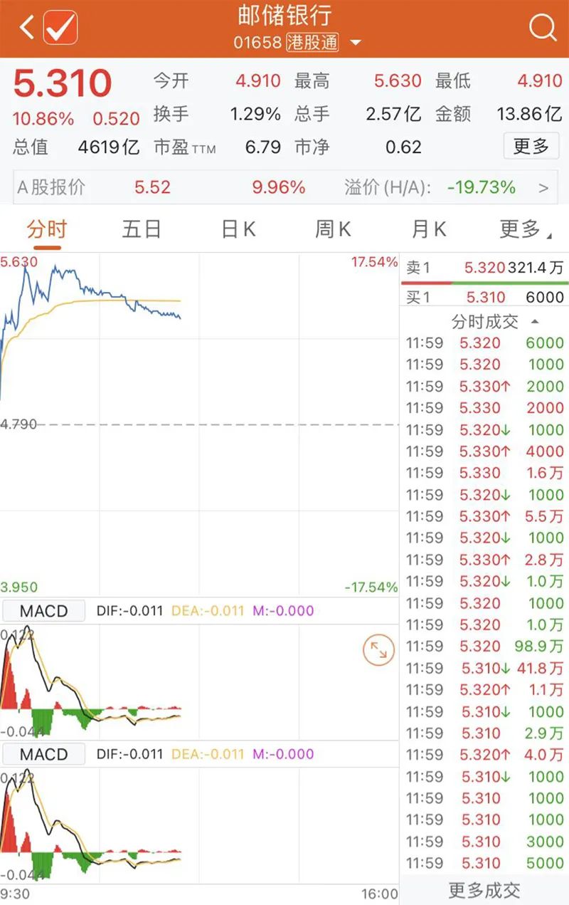 港股方面,内资银行股也全面爆发。其中邮储银行涨超10%,招商银行涨近6%。