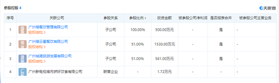 据天眼查显示,公司目前持有3家子公司和1家联营公司,主要从事餐饮和旅游业务。