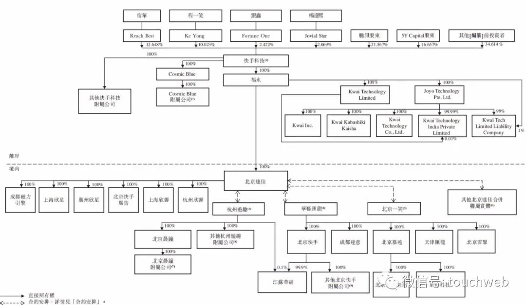 IPO前,腾讯持股为21.567%,宿华持股为12.648%,程一笑持股为10.023%,5Y Capital持股为16.65%。