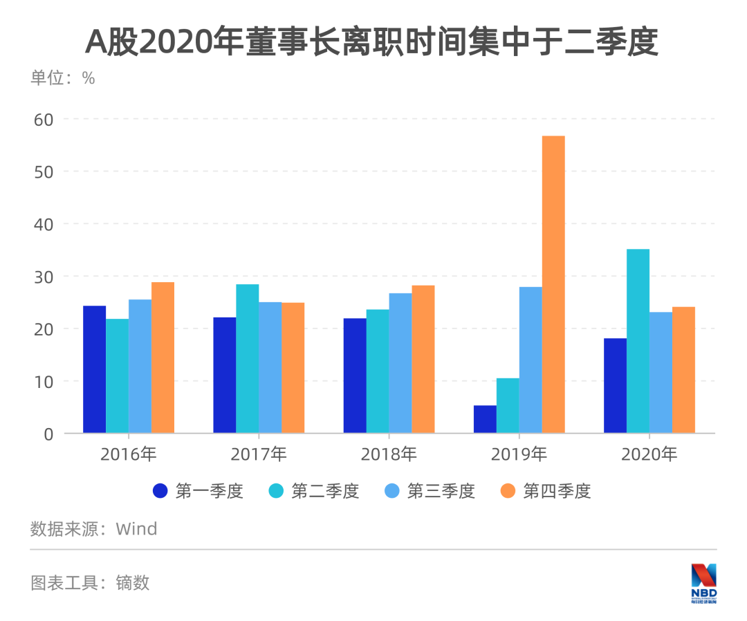 不同于2019年度有过半离职事件在12月扎堆发生,2020年度的董事长离职事件发生时间分布更均匀,相对集中于第二季度。
