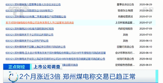 2个月涨近3倍 郑州煤电称交易已趋正常