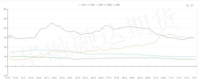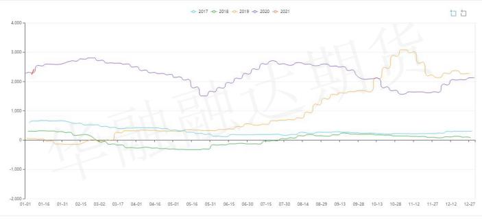 上图为基差图,柱状图代表基差变动情况,由于上市挂牌价格高于预期,生猪上市以来基差不断走强,期市运行一周时间企业卖保利润兑现20%左右,远大于现货下跌幅度,据分析春节后基差可能出现回归。