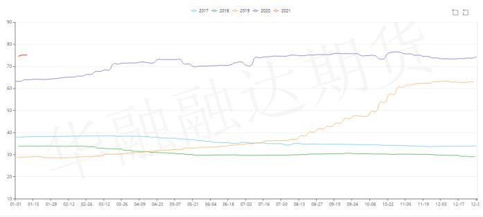 表5为自繁自养生猪养殖利润年度对比图,图中所示从2019年8月至今养殖利润远远高于前几年,2020年养殖利润中间虽有反复,但至12月31日统计数据显示自繁自养利润仍有2236.14元/头,处于历史高位。截止2021年1月8日统计自繁自养利润继续上行至2421.01。表6为2020年1月至今的猪粮比变动图,图中数值整体比值均大于均衡点6,从全年11月中旬开始至今猪粮比持续上行,利润也不断增加,预期猪粮比到2月中旬也就是春节后会出现回落。