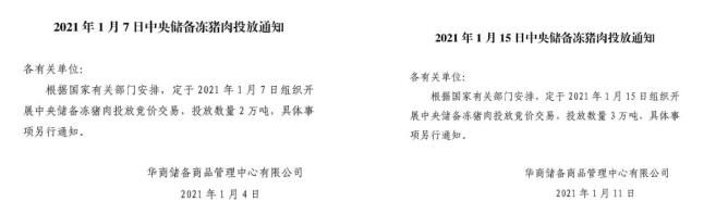 2021年开年以来中央分别在在1月7日、1月15日投放储备冻肉共计5万吨,中央连续投放储备冻肉,也是对目前连续上涨的猪肉价格起一定抑制作用;同时持续投放冻肉推动了养殖企业的出栏进度,大部分地区出栏量持续增加也是生猪价格连续下跌的重要原因。