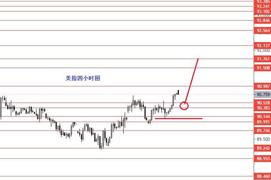 美指周五正如预期向上运行,收盘于90.50上方。从图形来看,本周重点关注90.10区域强支撑,在没跌破前,继续按震荡上行格局操作,若跌破,改区间震荡思路。本周操作建议:90.40附近做多,止损89.80,目标先看向91区域,上破后再看向91.50和91.80区域。控制仓量,严格止损。