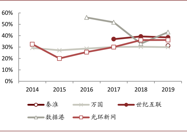 2) 土地、电力、网络等资源禀赋。政府部门在电力及土地资源批复上会优先考虑具备大量项目经验及丰富资质的企业,第三方数据中心在建设经验上较为丰富,因此政府会更倾向于将电力及土地指标分发给第三方数据中心来保证项目存活率及拉动当地产业经济。网络资源方面,我们认为随着国内数据中心规模提升,以及骨干网络的不断优化,第三方数据中心有望具备类似Equinix的广泛网络连接互通能力,提供更多增值服务。