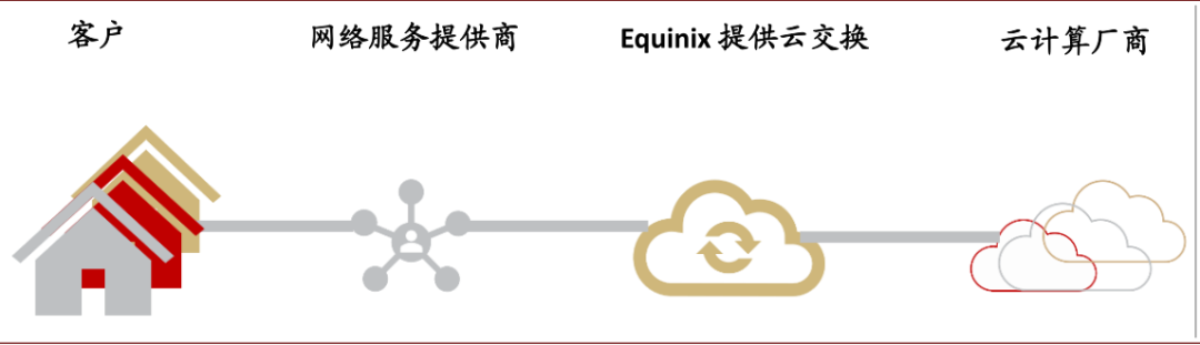 ► Equinix的云交换技术:联通多家云服务商和本地数据中心是核心优势。以Equinix为例,公司通过多年外延并购逐步积累了全面的技术能力,涵盖混合云、数据存储、数字化转型IT咨询等增值服务,与主流云计算厂商合作推出低延时、大带宽的专网直连服务,在公有云和托管的私有云架构之间提供安全互联服务,帮助中小企业客户在全球部署和使用多云服务,同时保障连接的安全性、合规性和可控性。