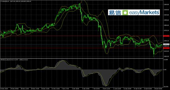 1月19日,昨日美元指数走势冲高回落,盘中一度挑战91的整数关键位置,之后多头信心不足回吐涨幅。美股大致维持了高位震荡格局似乎市场参与者不愿在积极的财政货币政策的氛围中轻易离场,或者说多头出货不激进,令美股方向不明朗。而黄金一度跌至1801美元附近,之后在抄底盘的支持下目前反弹在1836美元附近徘徊。