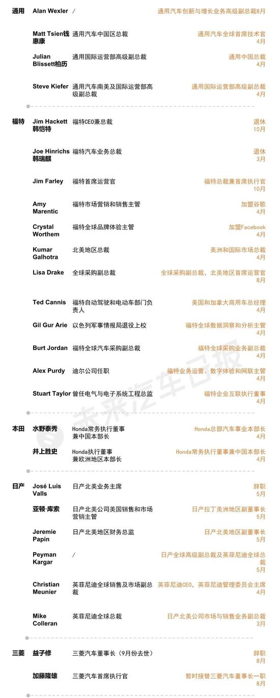 作为核心管理层,他们的加入和离开都在一定程度上影响或反映着车企的走向。事实上,当2020年的全球汽车市场经历着一半海水,一半火焰,背后的人事“剧震”和调整也贯穿始终。