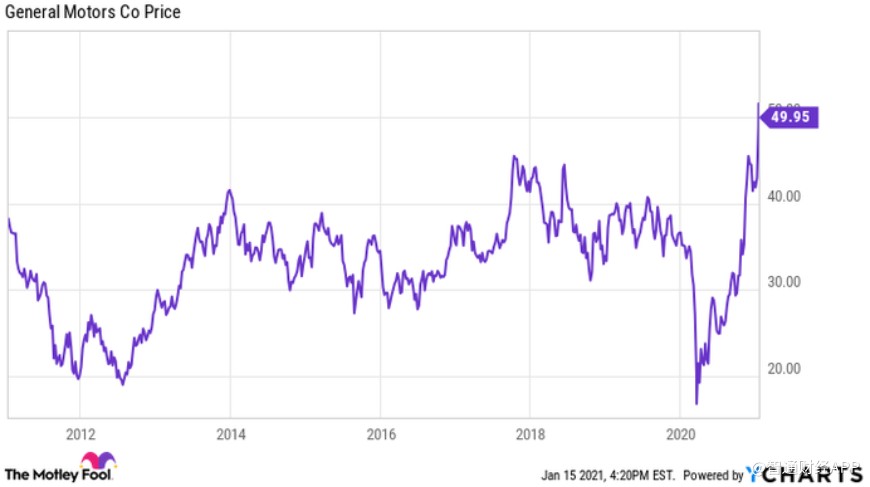 去年春天,通用汽车在北美的生产被迫暂停了大约两个月,在这段时间里,由于人们居家隔离,汽车销量大幅下滑。然而,随着美国经济重新开放,需求迅速反弹,通用汽车在去年第三季度获得了巨额利润。去年第四季度美国国内销售趋势进一步改善。因此,通用汽车股价开始飙升。上周,该股股价首次突破50美元,创下历史新高。