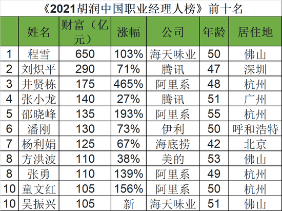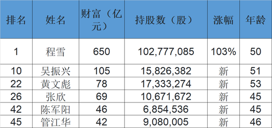 海天味业50岁的程雪以650亿元财富成为“中国职业经理人首富”。