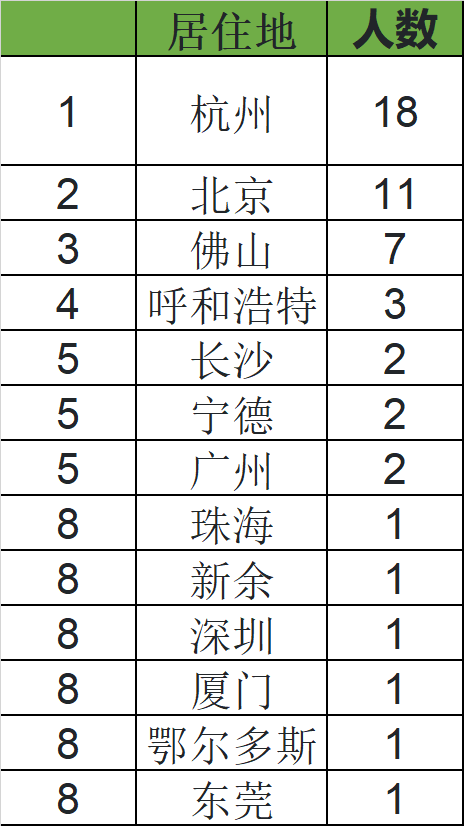 前50名职业经理人分布在全国13个城市。阿里系16人的占比下,杭州成为上榜人数最多的城市,共计18人,还有2人来自同花顺。北京11人位居第二,佛山以7人位列第三,其中6人来自海天味业,1人来自美的。