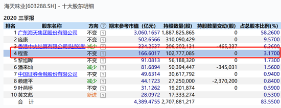 她的财富上涨了一倍,位列去年胡润百富榜前100名。主要原因在于她拥有海天味业3.17的股权。财报显示,程雪持有海天味业超1亿股股份,而去年全年,海天味业股价暴涨超125%,程雪的身价也随之暴涨。