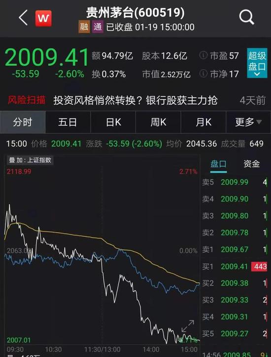 A股跳水原因曝光!持有贵州茅台股份最多的基金减持了!抱团股继续下跌